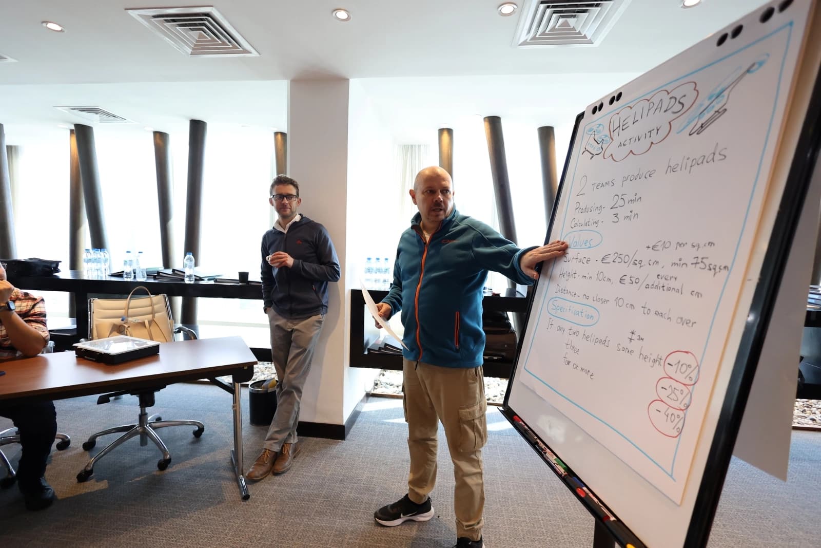 Helipads involve 2 or 3 competing teams. It is designed to demonstrate how effective team working within and between teams influences business success and highlight the key qualities that influence the process.
